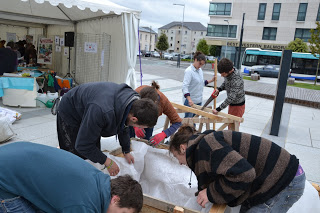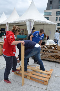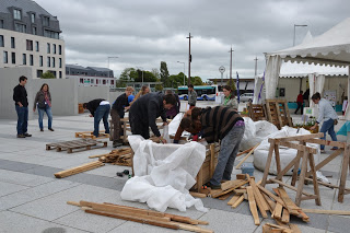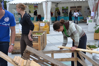 Le 2 juin, sur la place de la médiathèque, les »Marteaux du jardin » ont été rejoints par les élèves du BTS du lycée maritime et leur professeur Tony Roul pour construire des super bacs de cultures