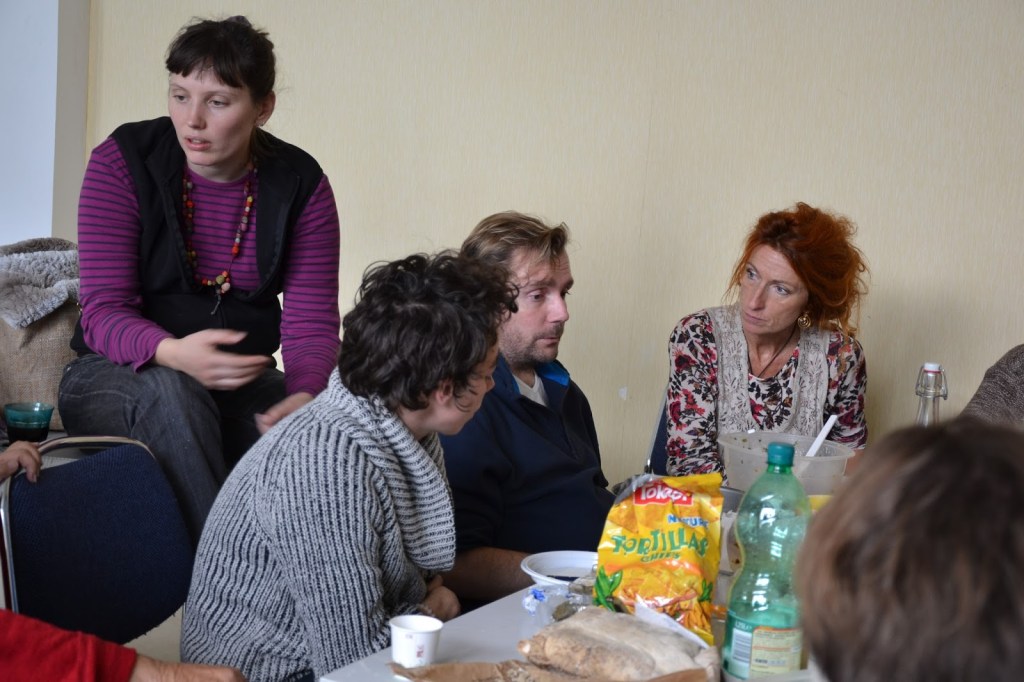 Merci à David, Céline, Justine, Bérangère, Thérèse, Lucille, Evelyne, Nathalie, Soizic, Cécile et Blanche pour leur participation conviviale et si respectueuse de la parole de l’autre. Les plats du midi apportés par les uns et les autres étaient délicieux.