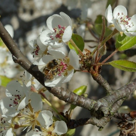 🐝🐝🐝Pendant ce temps… les abeilles butinent les fleurs de poirier, pour nous assurer de belles poires cet été 🍐🍐🍐 !
