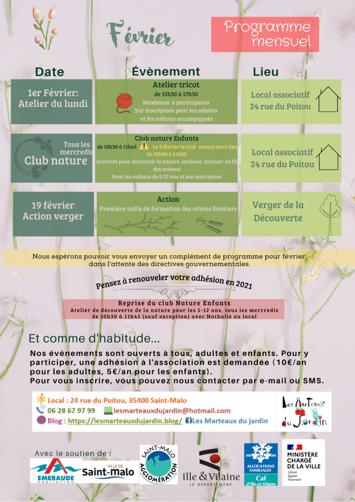 Nous vous communiquons à la suite de cette lettre d’information le programme de ce mois ci, qui sera peut-être modifié courant février.