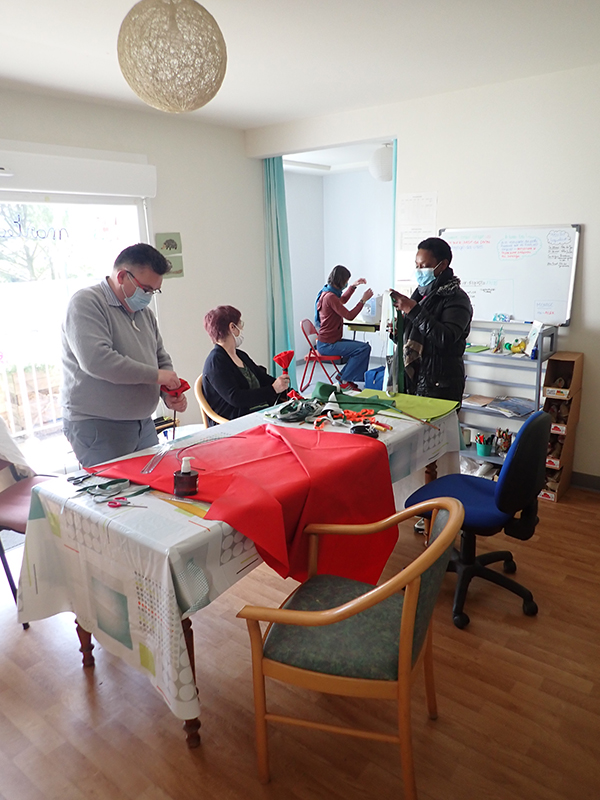 Lundi 17 mai : Avec une équipe motivée et efficace nous avons repris la suite de l’atelier du 29 mars : fabrication de coquelicots géants pour décorer les balcons et jardins.