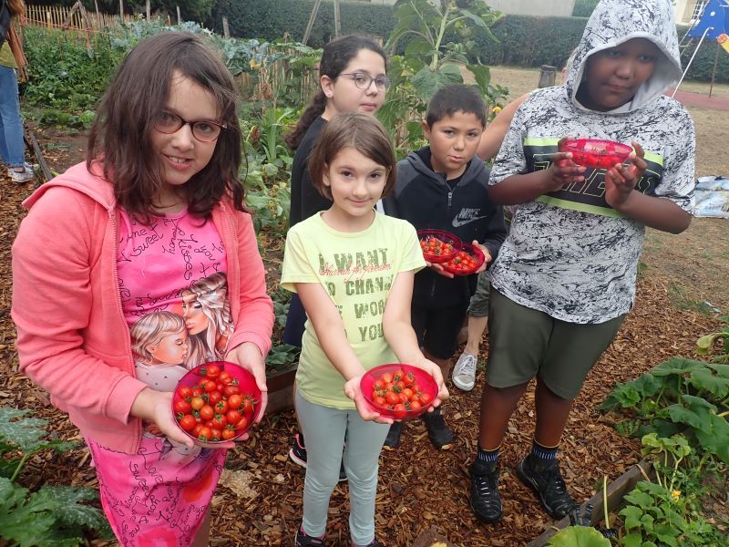 Au club nature ce mois-ci, nous sommes sortis au jardin par tous les temps. Nous avons rรฉcoltรฉ des courgettes et plein de tomates-cerises.