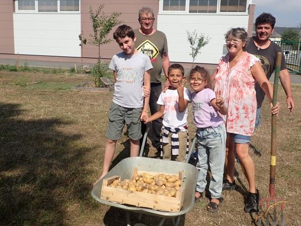 Au verger, prรจs du jardin de La Dรฉcouverte, c’est 17 kg de belles pommes de terre que nous avons rรฉcoltรฉes avec les enfants et que nous avons partagรฉes.