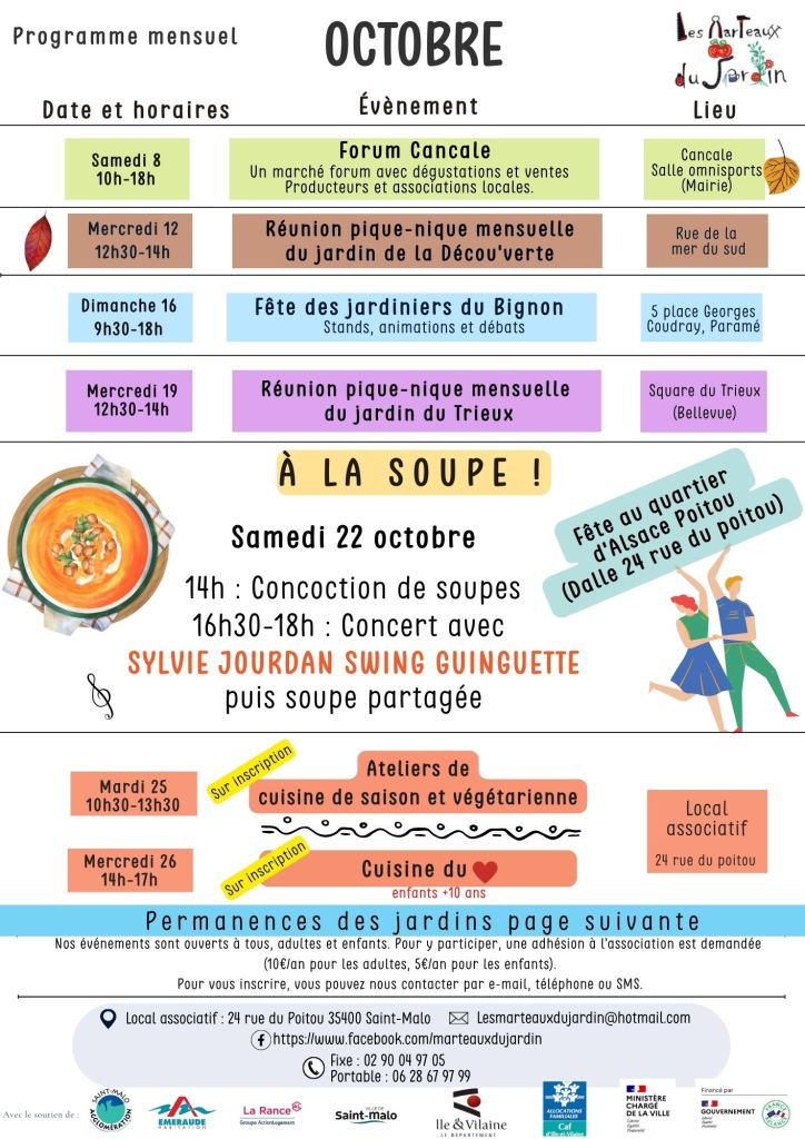 Nous vous partageons le programme du mois d’octobre
