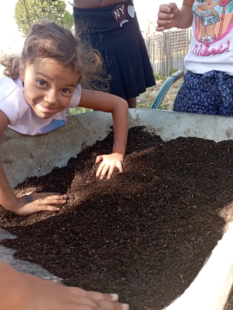 Un an plus tard, nous sommes ravis de vous prรฉsenter le terreau fabriquรฉ sur site. Avant de lโutiliser pour lโรฉlaboration de nos semis, nous le tamisons pour en extraire les plus petits รฉlรฉments et remettons les gros รฉlรฉments ร composter de nouveau. Et tout รงa, dans la bonne humeur !!
