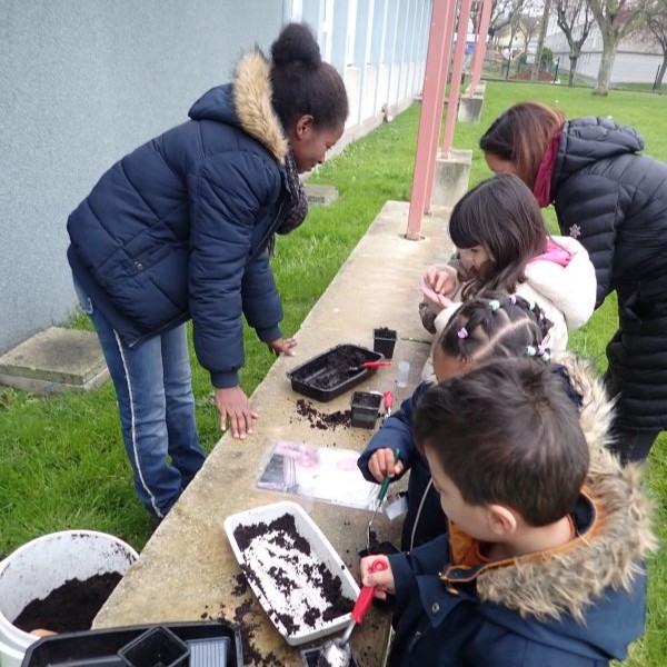 Ils ont également semé leurs graines de tomates (issues des tomates cerises du jardin de leur école !) et gardé précieusement leurs semis au chaud dans leur classe, jusqu’au temps du repiquage.