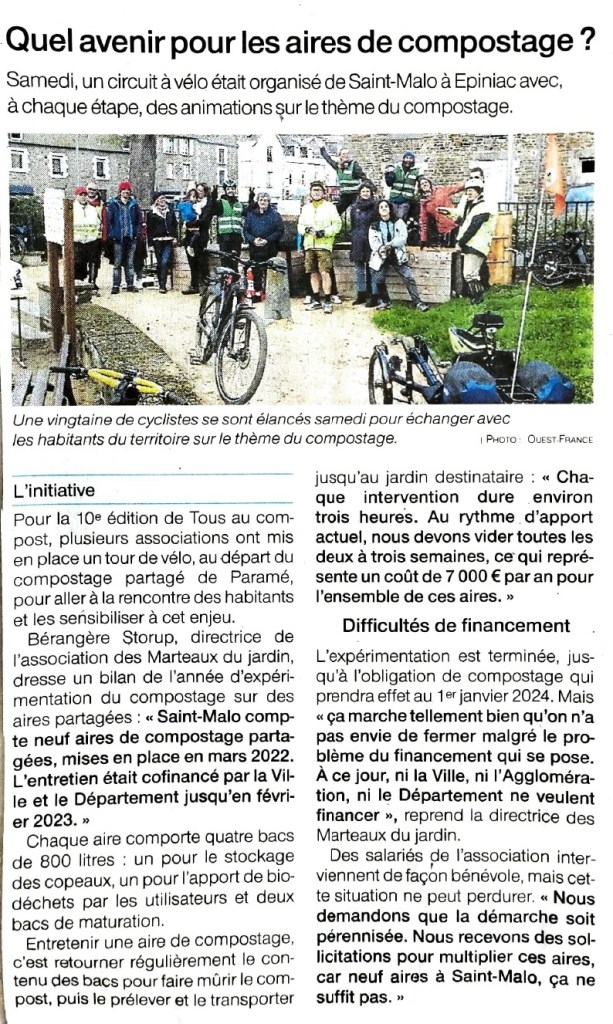 | Si vous avez Facebook, beaucoup de photos ont été publiées par notre association, Compost’Tout et également le Réseau Compost Citoyen ! Une journaliste Ouest France a même fait le déplacement et a rédigé l’article ci-dessus ! ⬆️ |