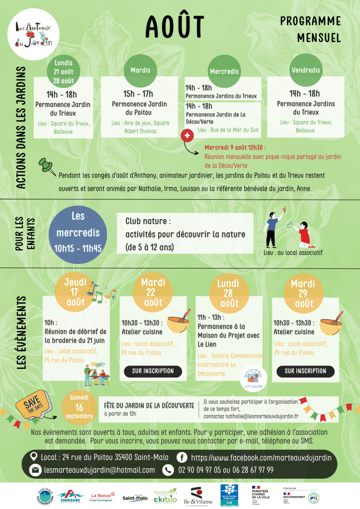 Cliquez sur « Programme d’août 2023 » pour découvrir le programme du mois d’août 2023 ! La lettre d’informations est bientôt disponible ! 😊