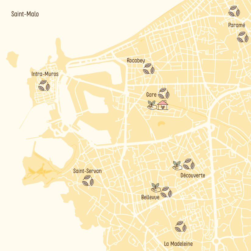 Les Marteaux du Jardin sont gestionnaires pour l’agglomération des 13 aires de compostage réparties dans Saint-Malo Agglomération : cf. carte ci-dessous.